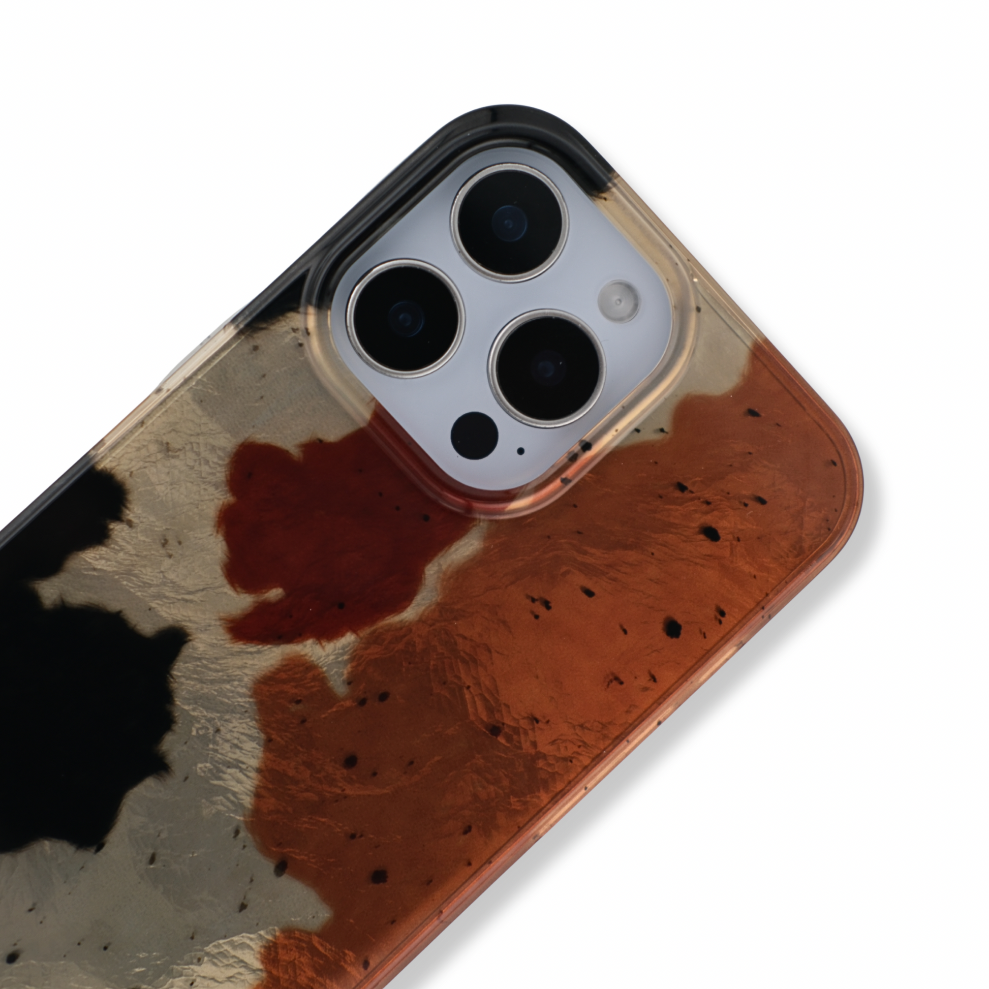 Channel rustic elegance with this glossy cowhide-inspired phone case. Featuring warm terracotta, cream, and black swirls, it adds a natural charm while offering durable protection. Perfect for those who love earthy tones with a bold twist.