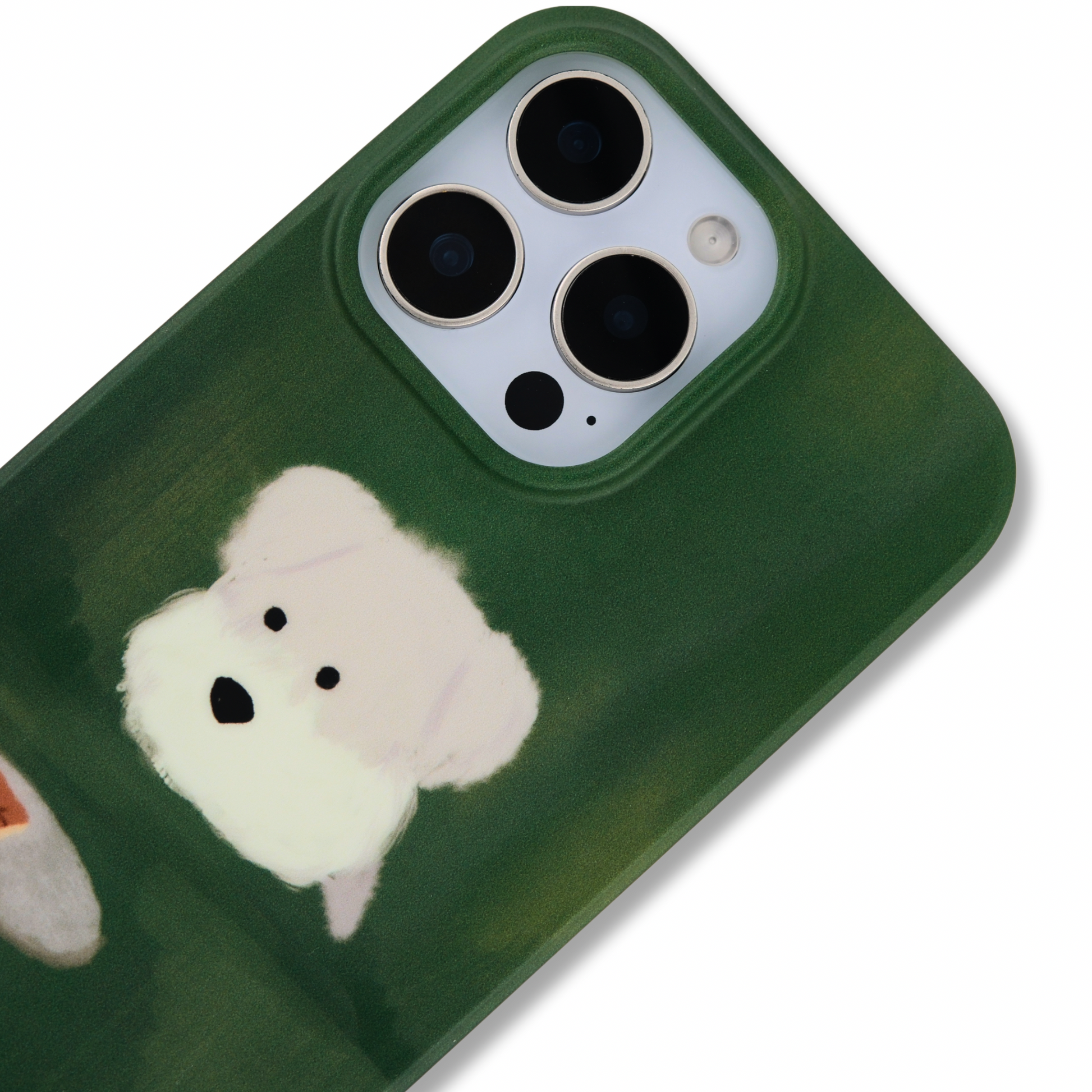 Soft and minimalistic, the Puppy on Green Case brings cozy vibes and a cute companion to your phone.