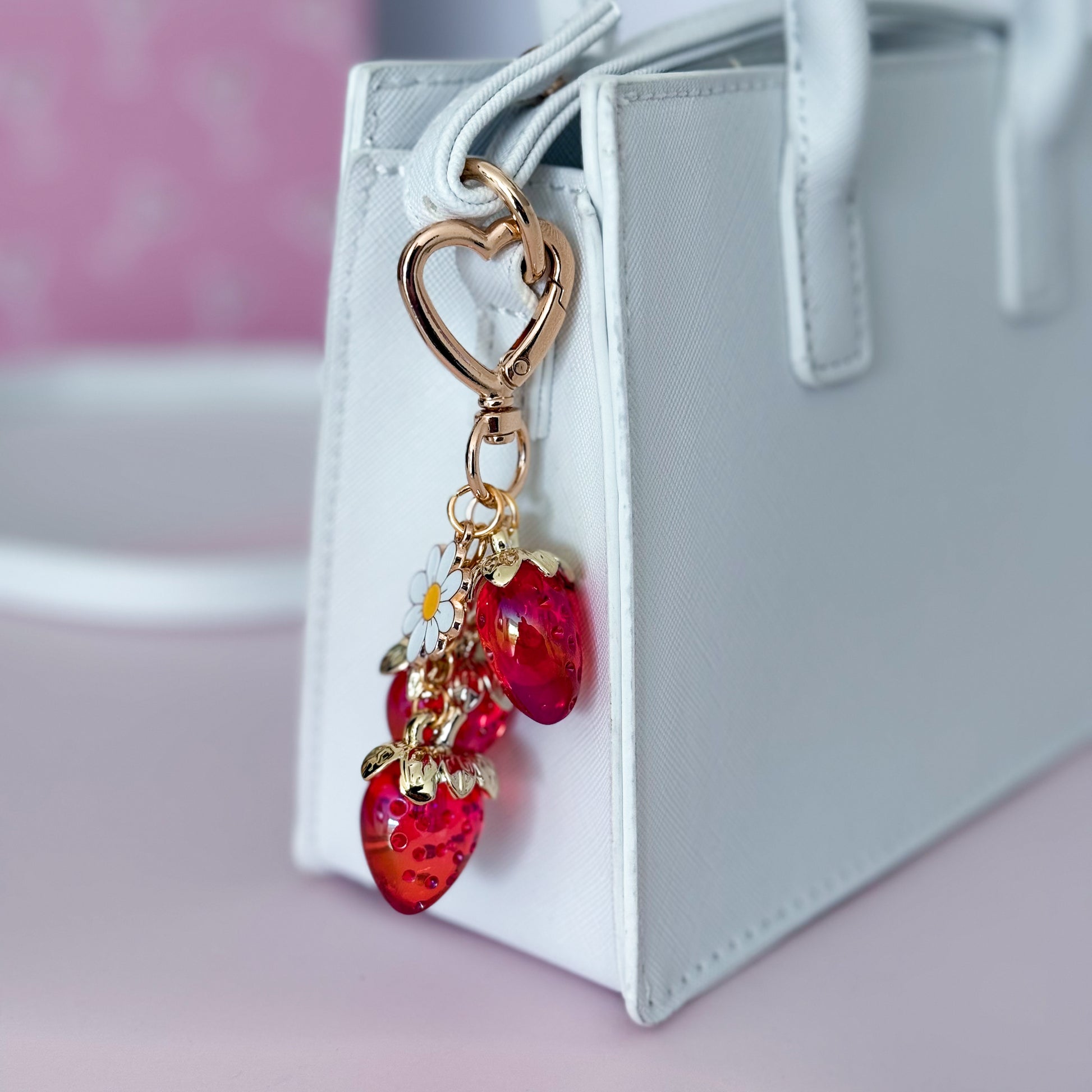 Sweet, playful, and full of joy — this keychain with three mini strawberries and a daisy charm is a perfect accessory for spring vibes!
